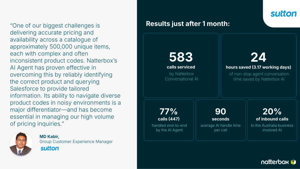 Just look at Sutton Tools. They automated 77% of their price and availability inquiries. The result? They saved 24 hours of non-stop agent conversation time in the first month alone. That’s 3 full workdays reclaimed.