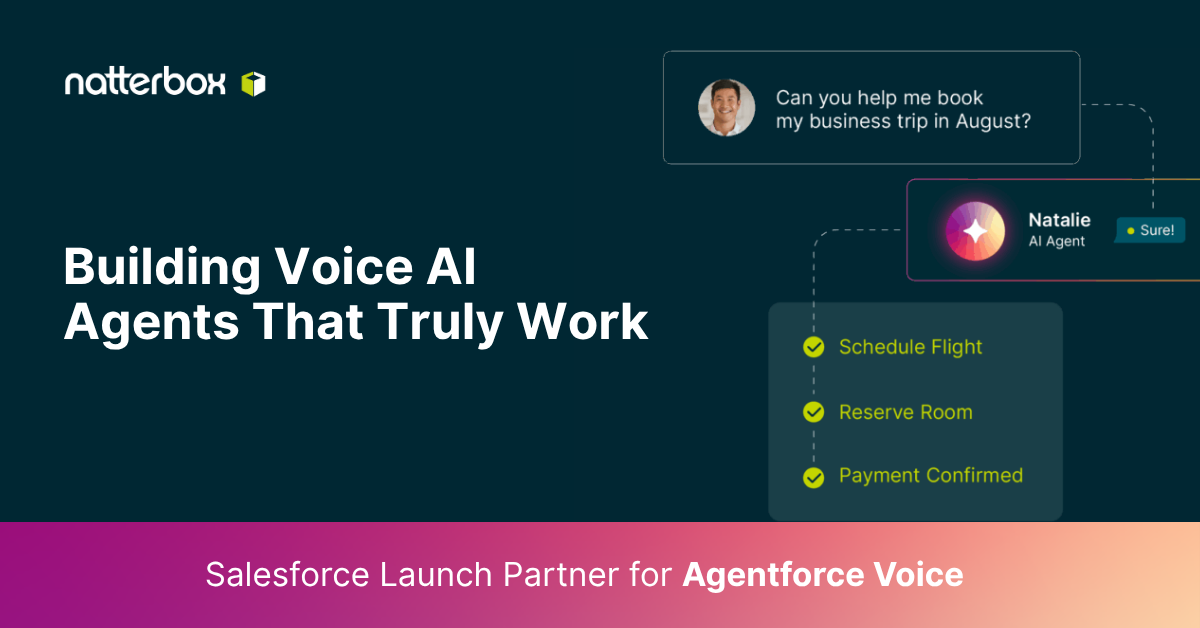 As Salesforce’s launch partner for Agentforce Voice, Natterbox shares its best practices for building Voice AI agents that truly work inside the new Agentic Enterprise. From controlling agent behaviour and embedding context from CRM data to designing fluid, human-like conversations and monitoring performance at scale, this guide outlines how to create AI agents that drive real customer success. Learn how Natterbox helps organizations turn every conversation into intelligent action — where humans and Agentic AI work together to deliver seamless, trusted experiences.
